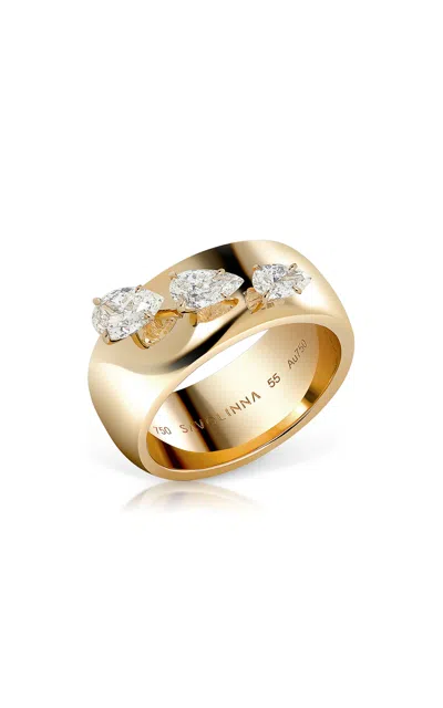 18k Yellow Gold Lemonade Cigar Band Ring With Floating Diamonds