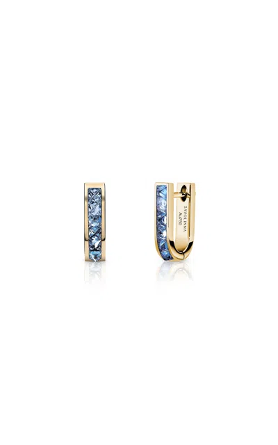 18k Yellow Gold Be Spiked Huggies Single Row In Blue Sapphires