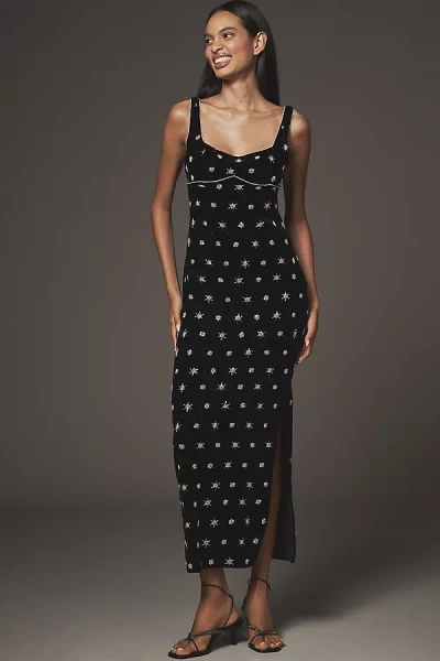Embellished Velvet Column Maxi Dress In Black
