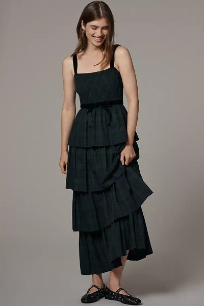 Square-neck Tiered Maxi Dress In Green