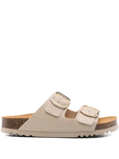 Double-buckle Leather Sandals In Neutral