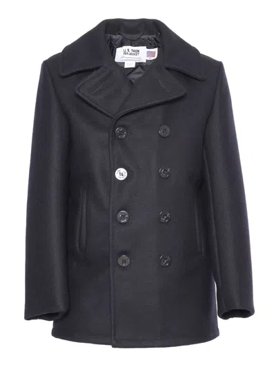 SCHOTT DOUBLE BREASTED COAT - 蓝色