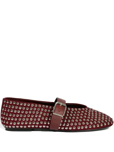 Eiza Shine Studded Suede Buckle Flats In Brown