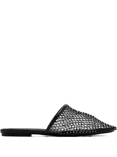晶饰网纱平底穆勒鞋