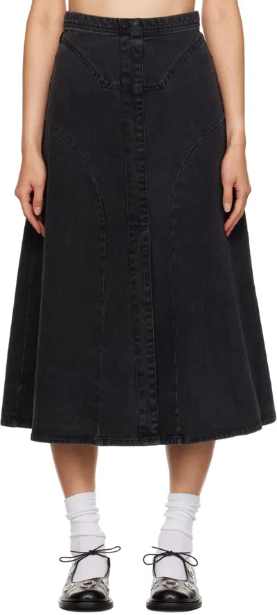 Black Cornelia Denim Midi Skirt