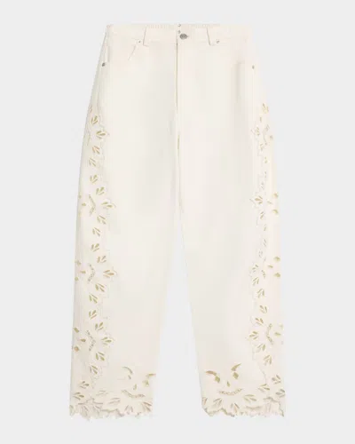 Cavina Embroidered Crop Barrel Jeans In Neutral
