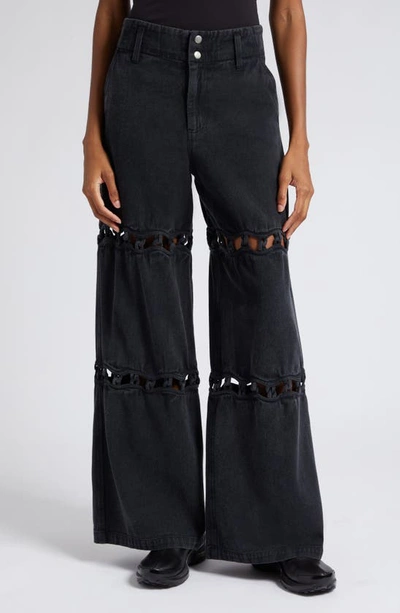 LUZ 镂空阔腿牛仔裤