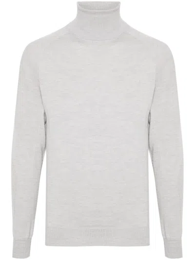 Classic Turtle-neck Sweater With Ribbed Detailing In Gray