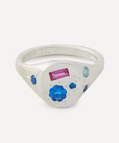 9ct Gold Neapolitan Blue Sapphire And Aquamarine Signet Ring