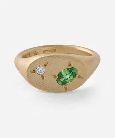 9ct Gold Neapolitan Green Multi-stone Signet Ring