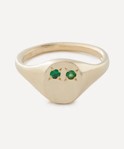 9ct Gold Neapolitan Green Multi-stone Signet Ring