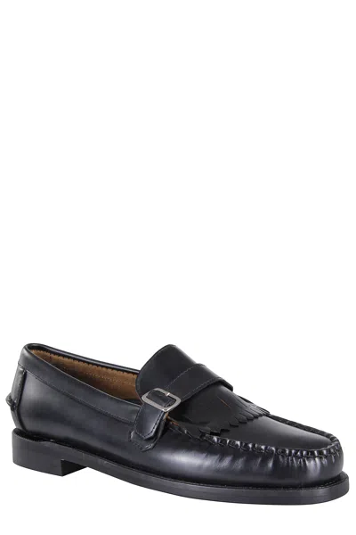Brushed Leather Ales Loafer With Fringed Mask In Black