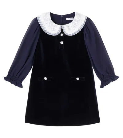 Kids' Velvet Flower-trim Dress In Black