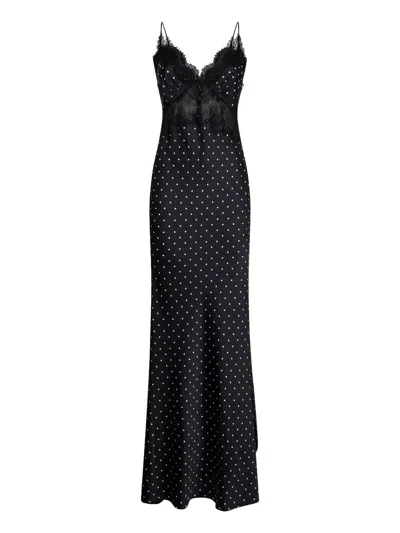 Abito Lungo A Pois In Raso E Pizzo Nero Self Portrait In Black