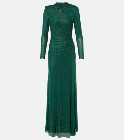 Embellished Gathered Gown In Green