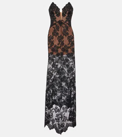 X CHRISTOPHER KANE蕾丝边饰缎布长礼服