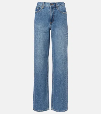 Crystal-embellished High-rise Straight-leg Jeans In Blue