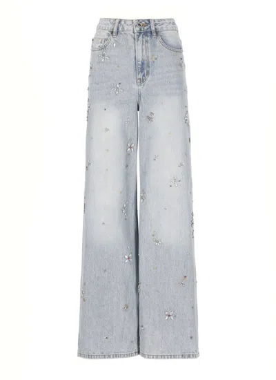 Wide-leg Jeans Featuring Strass Embellishments In Blue