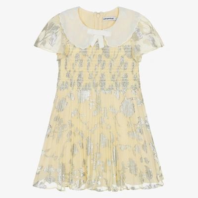 Kids' Girls Yellow & Silver Floral Jacquard Dress