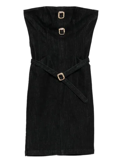 Black Denim Bandeau Midi Dress Clothing In Blue