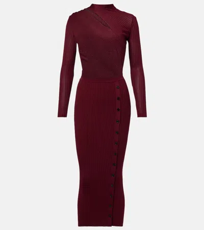Diamante-trim Rib Knit Midi Dress In Blue