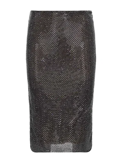 Womens Self Portrait Rhinestone Embellished Stretch-woven Midi Skirt In Brown