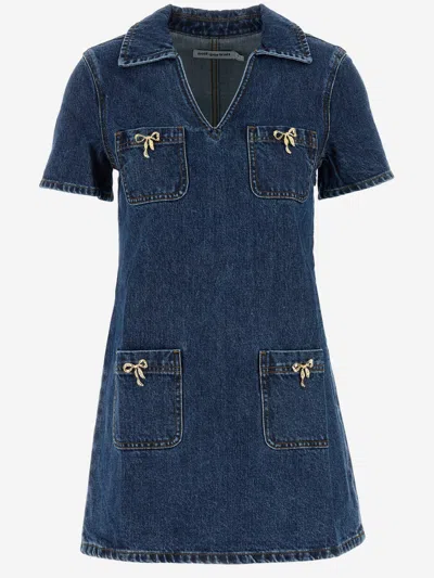 Self Portrait Women Blue Denim Gold Bow Mini Dress