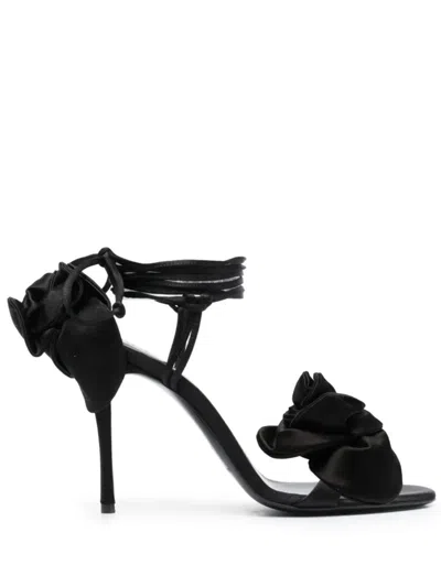 "flower" Sandals T.080 Shoes Satin In Black