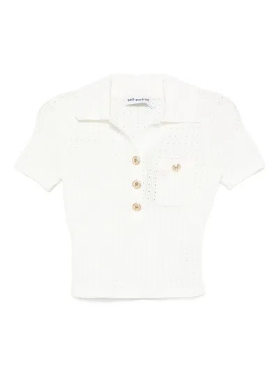 Self Portrait Crew Neck T Shirt With Embroidered Logo In White