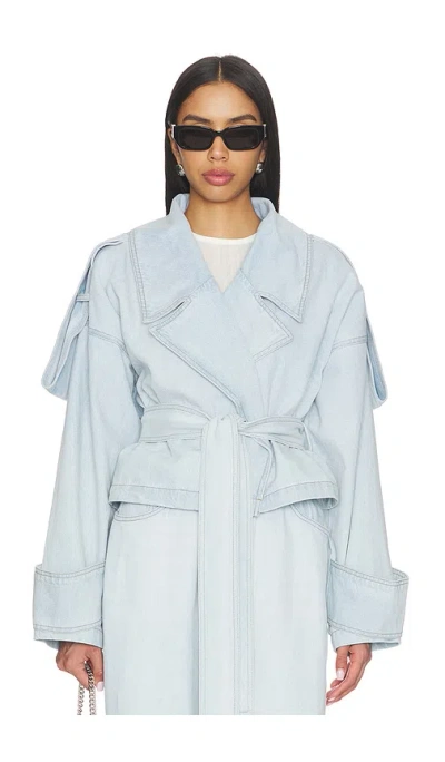 Faux Leather Stitch Trenchcoat In Black