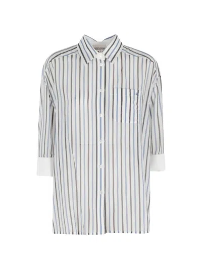 Gracia Striped Cotton Shirt In White