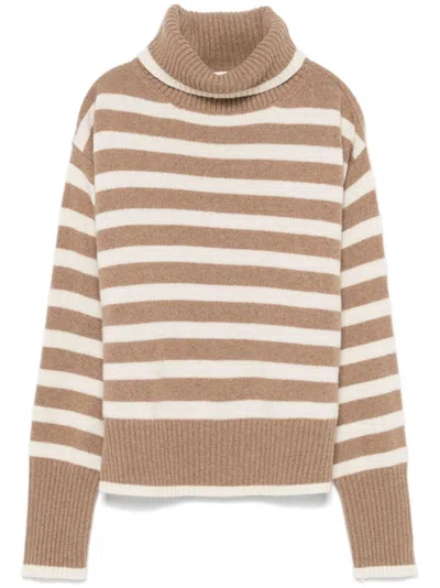 Striped Roll-neck Sweater In White