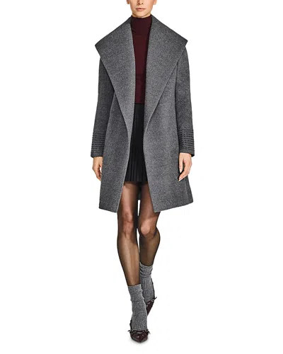 Mid Length Shawl Collar Wrap Coat In Gray