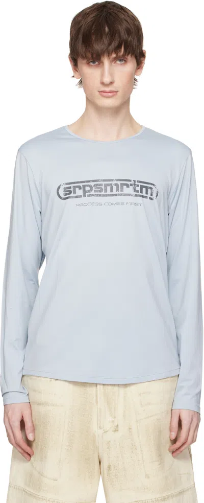 Blue Embossed Long Sleevet-shirt In Newspaper Ciel