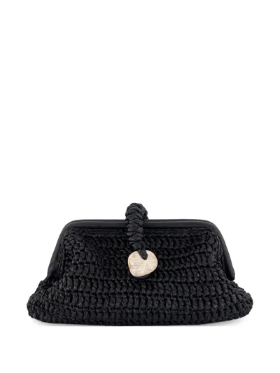 Delphine Raffia Clutch Bag In Black
