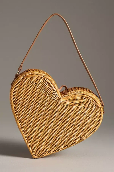 Pulsating Heart Wicker Shoulder Bag In Beige