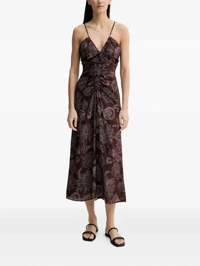 花卉印花缩褶中长连衣裙