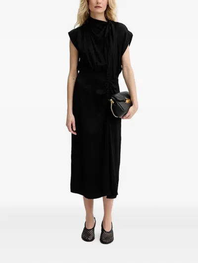 缩褶领中长连衣裙