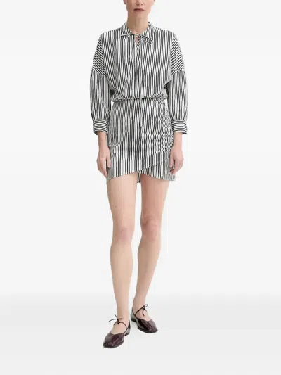 LAUREL 系带领条纹迷你衬衫裙