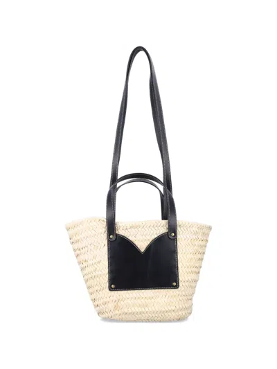 Leather-trim Woven Tote Bag In Multi