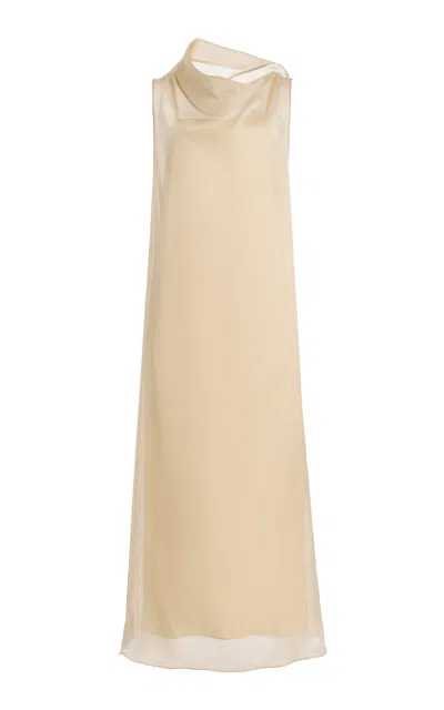 Off-the-shoulder Draped Satin Maxi Dress In Brown