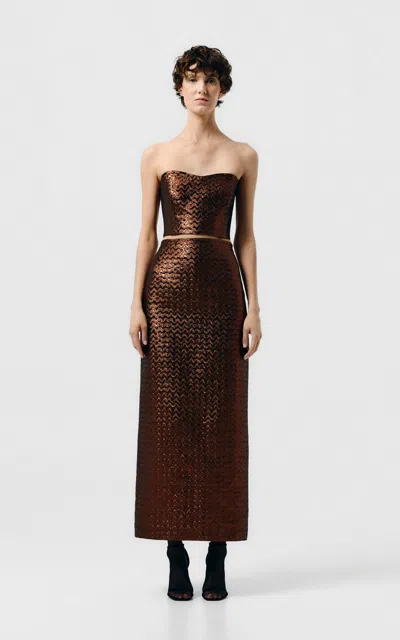 High Neck Organza And Satin Lining Colum Top In Neutral