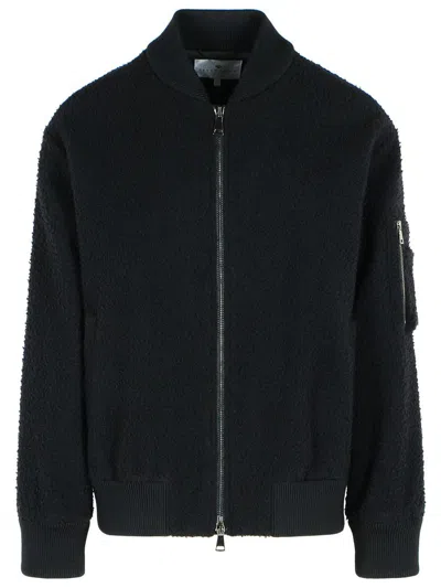Black Wool Bomber Jacket In Blue