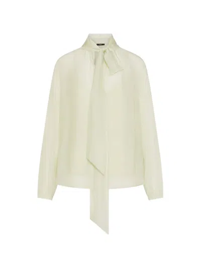 Pussy-bow Semi-sheer Blouse In White