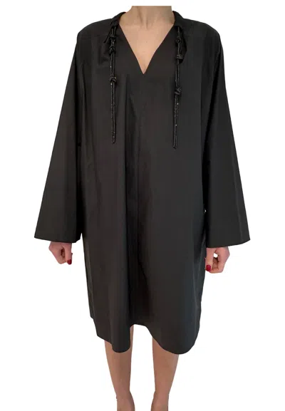 Midi Dress In Stretch Poplin With Kimono Sleeves In Black