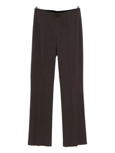 Stretch Straight Leg Linen Trousers In Brown In Other