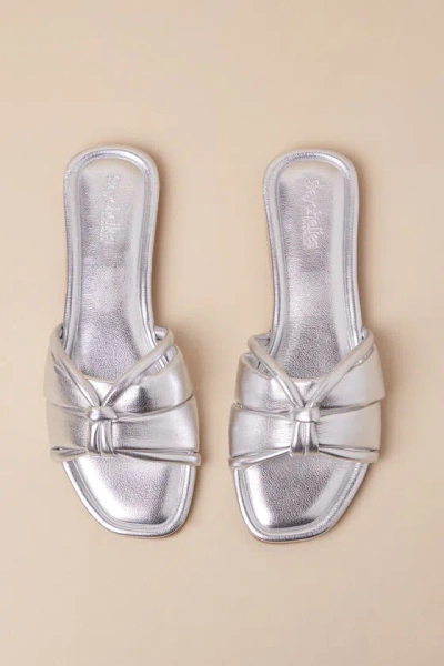 Shades Of Cool Silver Metallic Knotted Flat Slide Sandals