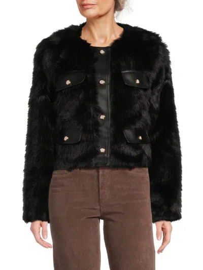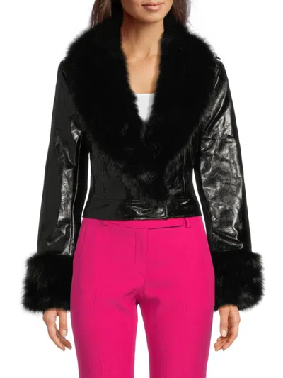 Women's Spread Collar Faux-fur Jacket In Black