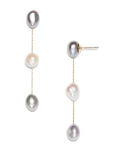 Betsy Swarovski Pearl Drop Earrings In 14k Gold Plated In Gray/white