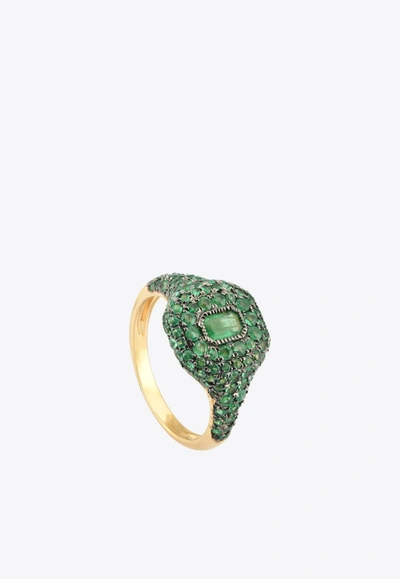 18 Karat Gold Emerald Pave Pinky Ring